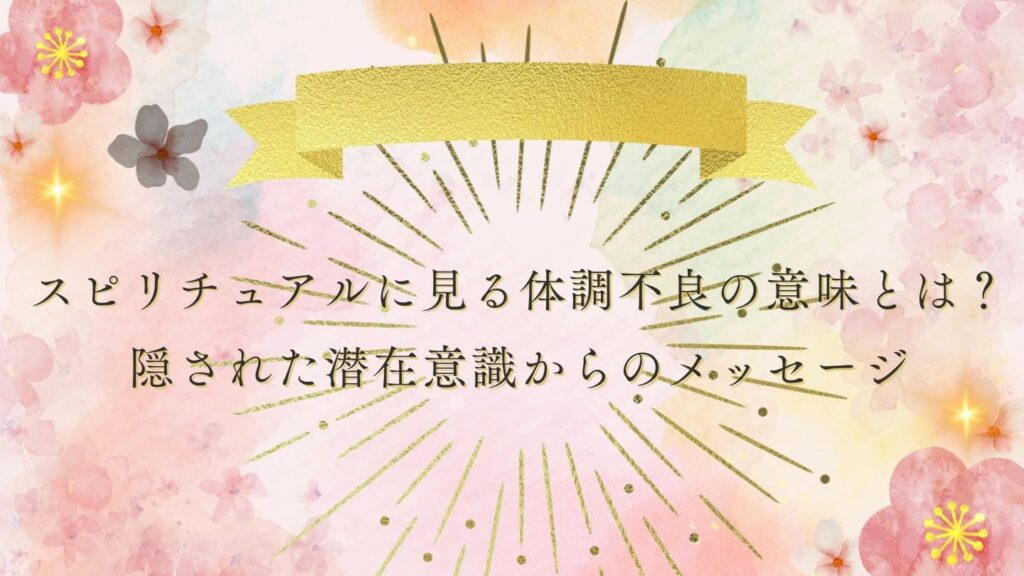 この記事は、体調不良が続く方やその背後にあるスピリチュアルな意味を探求したい方に向けて書かれています。体調不良は単なる身体的な問題ではなく、潜在意識からのメッセージや人生の転機を示すサインであることが多いです。この記事では、体調不良の原... -