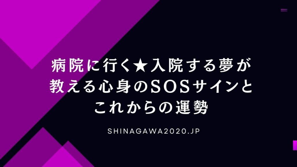 夢占いに興味がある方や、特に「病院」に関連する夢を見たことがある方に向けて書かれています。病院の夢は、心身の状態や運勢に関する重要なメッセージを含んでいます。ここでは、病院に行く夢や入院する夢が持つ意味、そしてそれが示す心のSOSサインにつ... -