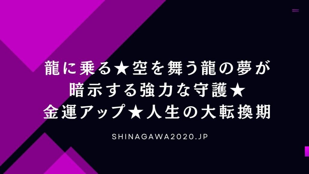 夢占いに興味がある方や、特に龍の夢を見たことがある方に向けて書かれています。龍は古来より強力な象徴とされ、夢の中での龍の存在は様々なメッセージを持っています。龍の夢が持つ意味や暗示、特に金運や人生の転換期に関する解釈を詳しく解説します。... -